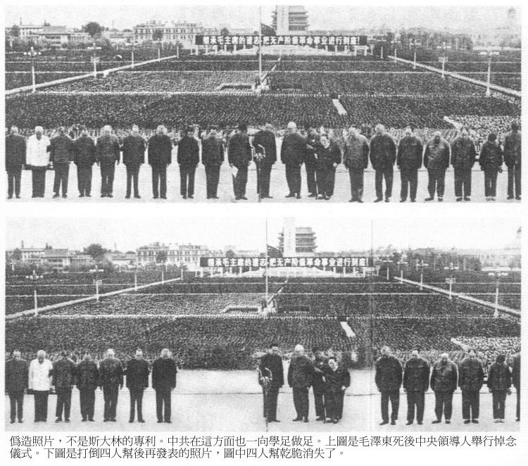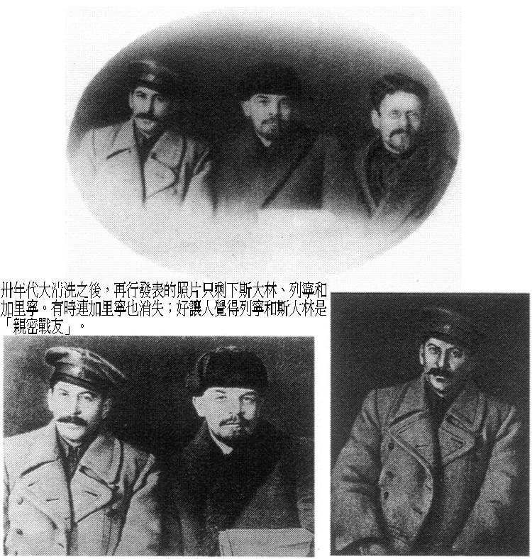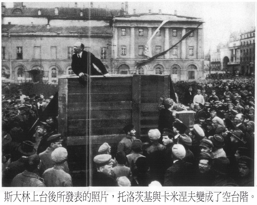 历代的当权者为了巩固其政权,常常会用各种手段捏造及歪曲真实的历史,以达到愚民的效果,方便其统治。这种捏造历史的情况似乎在那些完全不受人民监督,拒绝任何方式的民主政治,却整天自称是代表人民的伪社会主义政权尤其严重。这里要介绍给读者的是一部难得的有关伪造前苏联历史的照片集,整个伪造过程的幕后黑手不是别人,正是在俄国1917年革命退潮中用尽一切阴谋手段去夺得统治权的独裁者史太林。在他掌权期间,不但进行大规模的清洗计划,把知情者及政治上的异己甚至自己的支持者一一从肉体上消灭,同时任意修改保存历史真相的珍贵图片及艺术品,为的是要消灭俄国十月革命的主要领袖(例如托洛茨基)的历史痕迹,同时伪造自己才是主要领袖的记录,为的是创造全国上下对他的个人崇拜。
