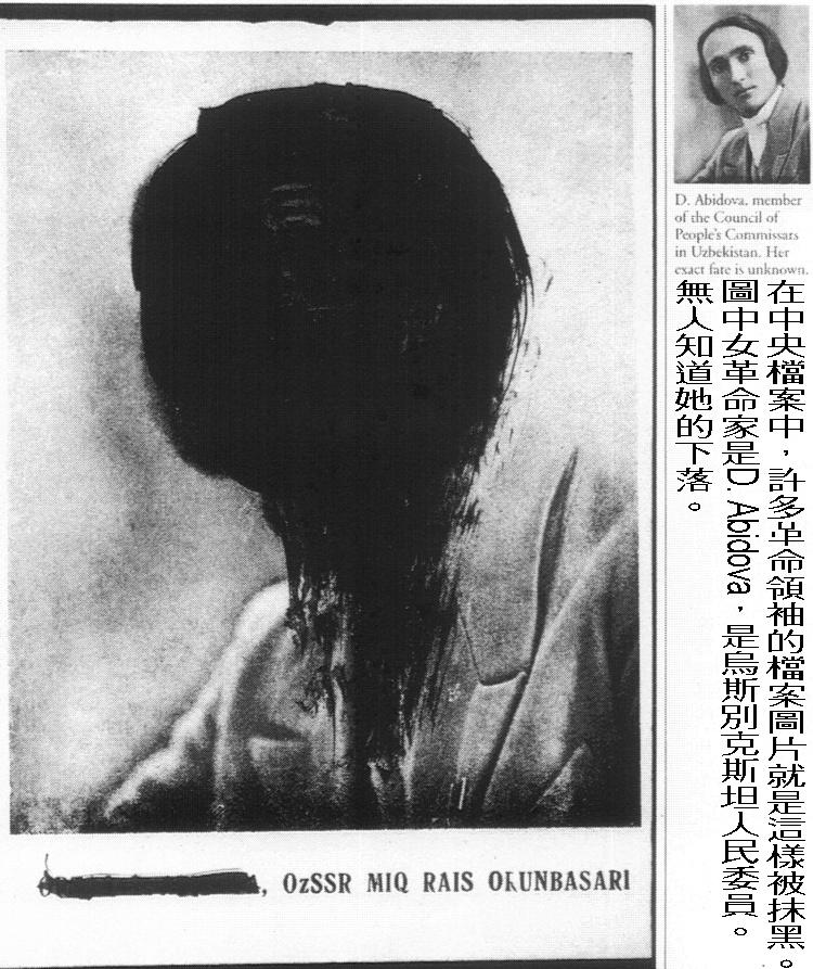 书中所用的部份图片是来自一位出色的前苏联艺术家的个人珍藏,其中有些人物──许多是被史太林认为是异己而遭清洗掉的──的面容都遭深色墨水涂污至难以辨认。