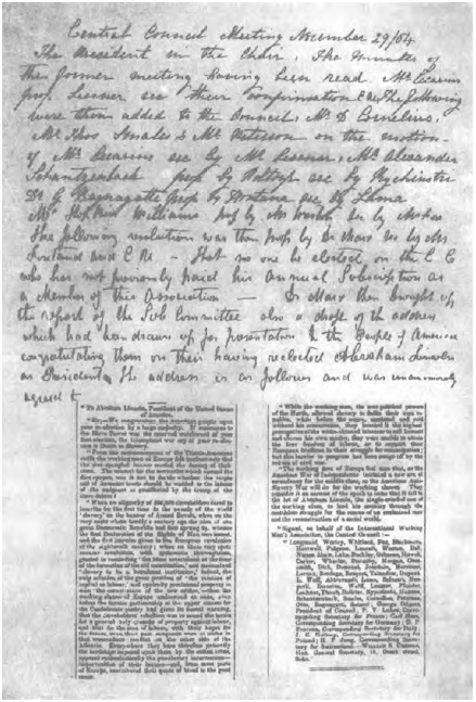 欧洲的工人坚信,正如美国独立战争开创了资产阶级取胜的新纪元一样,美国反对奴隶制的战争将开创工人阶级取胜的新纪元。他们认为,由工人阶级忠诚的儿子阿伯拉罕·林肯来领导自己国家进行解放被奴役种族和改造社会制度的史无先例的战斗,是即将到来的时代的先声。