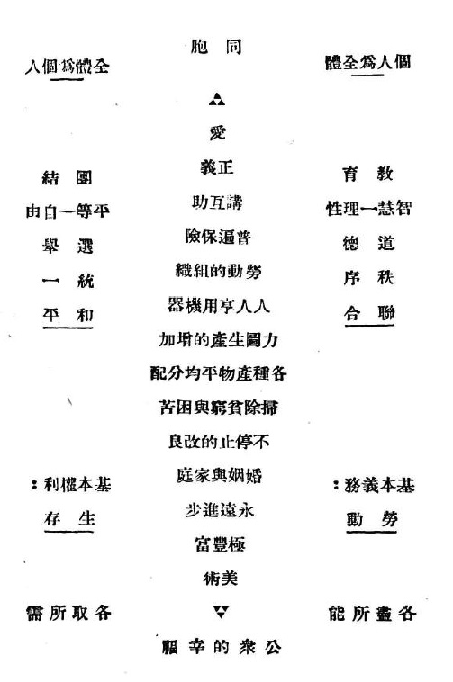 我们不是要以爱去对付一切事件的共产主义者。我们并不是在月光底下对着人们的困苦,痛哭一场,于是想到黄金时代的将来,又兴高彩烈,喜不自胜了。我们知道,现代正是情形严重的时候,正是需要人人都努力的时候,而这种爱的甘露并非别的东西,不过是自己精神上一种弱点罢了,凡具有这种弱点的人,一切精力都不适用了。〔按此即指马克思等所攻击奢谈博爱的格力克。〕