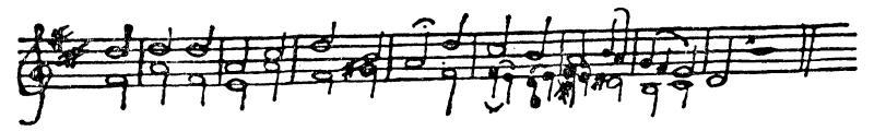 我还想告诉你,我正在谱曲,而且是谱写赞美诗。但是这件事可难了:节拍、升半音以及和声带来很多麻烦。到目前为止,我的进展还不大,但还是想给你看一段样品。这是赞美诗的前两行:“我们的上帝,强大的堡垒。”