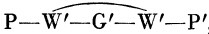 G—W—G′循环使下述情况变得不可思议:在G—W行为即购买商品以后和W—G′行为即重新出卖商品以前实现的资本主义生产过程,始终是看不见的。这样,如果我们用字母P来表示这一生产过程,那么G—W—G′就变为 。