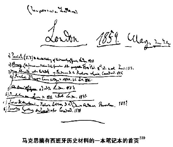 马克思摘有西班牙历史材料的一本笔记本的首页[239]