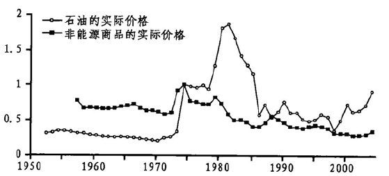 图1.4 初级商品的实际价格(1952~2004)