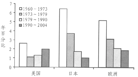 图1.7 总体经济和劳动生产率的增长(1960~2004)