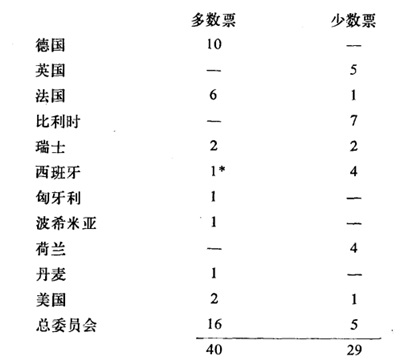 海牙代表大会原打算处理若干重要的社会主义政策问题,这是各总支部在1869年的巴塞尔代表大会上提出来供进一步讨论的。但是真正到了讨论的时候,与会者已经不暇他顾,而只注意政治行动的鼓吹者和无政府主义者之间的激烈争执了。这是马克思同巴枯宁的争执,这一争执胜负不分,简直无法讨论其他问题。到了表决的时候,多数票显然反对无政府主义者和工联主义者而赞成政治行动。看一看在主要问题上多数票和少数票的构成情况是颇有意思的。不能认为以下数字是十分精确的。因为有几个代表团意见不一致,而且也不是每个代表都投了票。