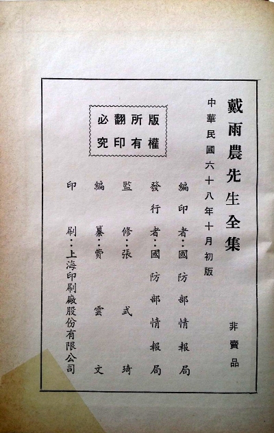 录入者注:戴雨农即戴笠;书中「领袖」「蒋公」之前照例空一格,录入时一概省去。