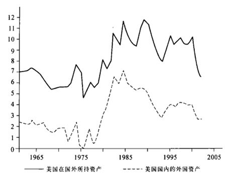 图1.8:从境外榨取盈余:美国的国内和国外收益率,1960~2002