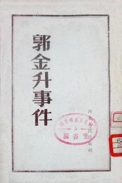 《郭金升事件》 河北人民出版社1952年11月版 一、关于对“郭金升事件”的调查和处理决定的报告 二、坚决肃清对待群众问题方面的官僚主义作风 三、继续深入开展反官僚主义斗争 四、我进一步认识到共产党的伟大和正确 |