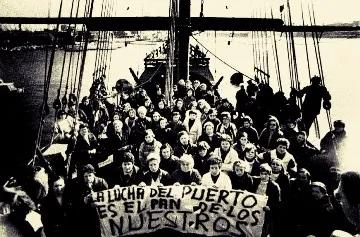 无论如何,这样的结果远远不能补偿工人们付出的牺牲:他们遭到袭击,与警察发生冲突,被逮捕,受重伤甚至死去。1980年7月21日,码头工人的女儿贝琳·玛利亚(Belén María)在一场和平静坐中被汽车压死了。今天,巴塞罗那港口码头工人组织还保存着她的照片。五年后,她的父亲因特内里费(Tenerife)港口的一场致命事故去世。这只是港口职业事故高发的一个例子,它对码头工人的家庭造成了威胁。因此,巴港工人组织与协调组织全体成员为建立互助基金(给退休人员、寡妇等的养老金)付出了巨大的努力。码头工人们还决定在吃点心的二十分钟里进行工作来为互助基金凑钱,这样的做法一直持续到现在。协调组织,尤其是巴塞罗那港口的协调组织,它以这样的方式表明,它不仅是作为工会参加斗争的。工人之间的互助,对其他公司工人的声援活动,尤其是国际声援活动,在集会议程上占据了很长的时间。这些都证明了码头工人对国际政治形势的了解,以及他们始终都不受政党摆布的事实。他们拒绝为拉美的军事独裁者运输战争物资,但免费为尼加拉瓜和索马里装运生活必需品。因此,码头工人的组织不仅是对单纯的经济和工会斗争的回应,而且还提出了激进的、不同于主流的主张,将之与自己理解世界的方式糅合起来,其特点就是对现存的生活方式采取高度的蔑视与排斥。