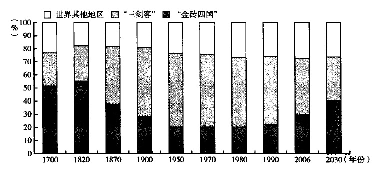 19 世纪末,局面发生了深刻的变化:1900年,先进国家的国内生产总值占到了全球国内生产总值的一半以上。半个世纪后,这种变化趋势得到了确认。到了1952年,在先进国家和世界其他地区的夹缝中生存的“新兴”国家,其国内生产总值在全球总额中所占的比例仅为18%。这种趋势一直持续到1978年,在此期间世界其他地区略有赶超。