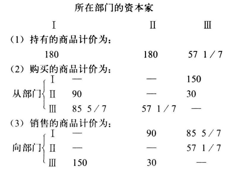 无论如何,数量q′是部门Ⅰ和部门Ⅲ联合资本的有机构成的表现。所以,利润率之独立于部门Ⅰ和部门Ⅲ的资本有机构成,在部门Ⅱ没有不变资本的场合下,根本不意味着其他两个部门的资本有机构成可以无限制地高。事情的真实情况更确切地是,如果不变资本在这些部门中的份额,数量q′,超过了一定限度,利润率的均等化就成为不可能。