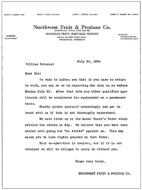 就在老板们设下圈套的前一天夜里,联邦特别调解员弗兰西斯·J·哈斯[1]神父从华盛顿赶来这里,跟邓尼根一起进行调停。雷·邓恩和我是工会的谈判代表,所以哈斯一到城里,就想见见我俩,我俩就跟他约好星期四下午见个面。警察刚好就在那天下午挑衅我们,所以我们马上通知哈斯,说我们不去了,只要警察还在挑衅,以后也别见面了。然后哈斯就跟奥尔森州长商量了一下,他们一起叫约翰内斯在四十八小时内(也就是到7月21日星期六那一天)停止进一步行动,这样哈斯才能跟工会谈判,尽量谈成协议。