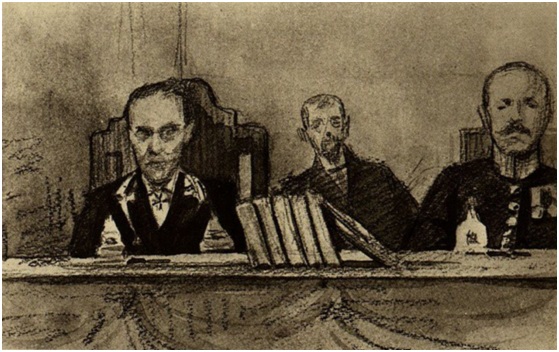 (法庭。前排左起第一位为法庭代表枢密官克拉申宁尼科夫;第二位为贵族代表古杜维奇伯爵[1]